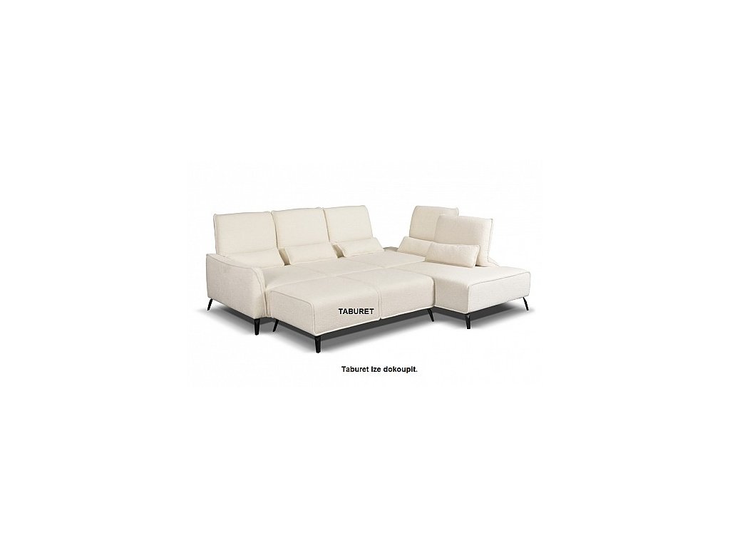 Možnost výběru pravé nebo levé orientace a zakoupení samostatného taburetu. Součástí řady MODUS je i elektrický výsuv sedací soupravy a další doplňky.