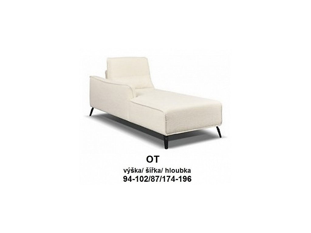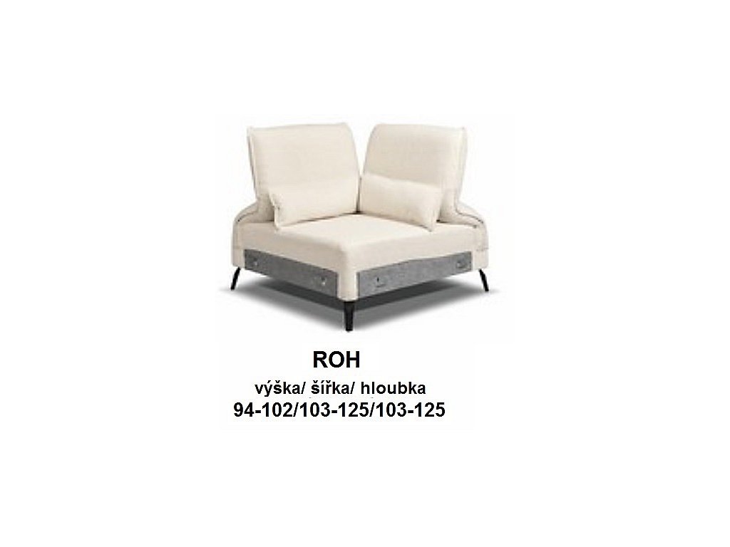 Vhodná do prostoru, díky čalouněným zádům a možnosti levého či pravého provedení. Součástí je velký taburet, který lze přisunout a vytvořit lůžko pro hosty.