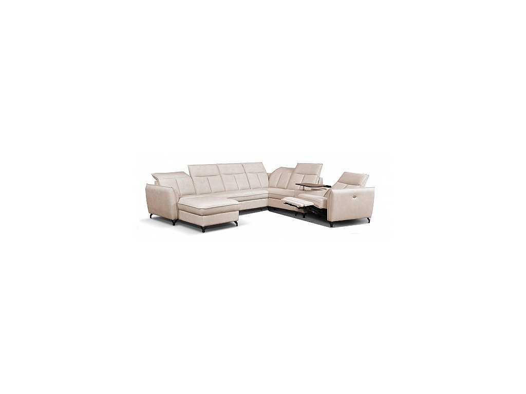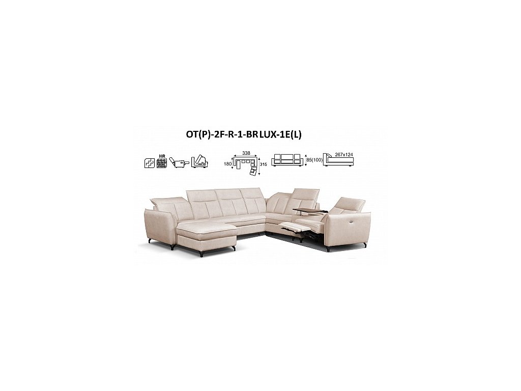 Sedací souprava ROSSO OT-2F-R-1-BRLUX-1E je rozkládací, s úložným prostorem, polohovatelné opěrky hlavy a také má relaxační rozkládací křeslo s elektrickým pohonem a díl, ve kterém jsou zabudované zásuvky na 230W – USB port a otočný odkládací stolek.