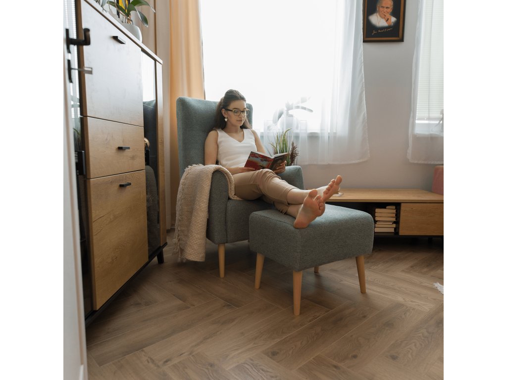 Čalounění z látky Matana s vysokou oděruodolností zajišťuje dlouhou životnost. Bukové nohy pevně drží nosnost až 90 kg.