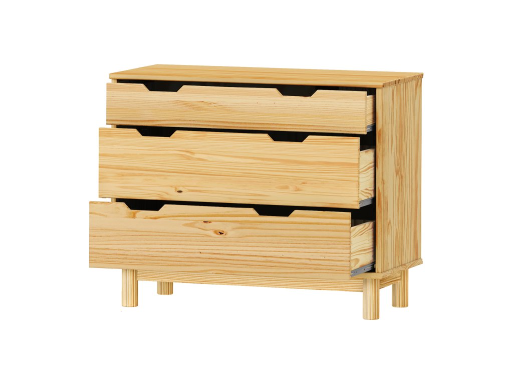materiál masiv borovice, lakované provedení 1 menší a 2 větší zásuvky s kovovými pojezdyDoplňkové parametry