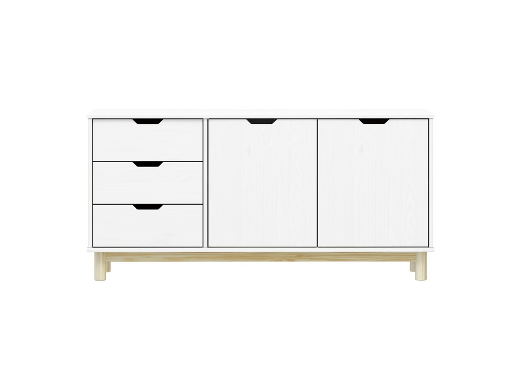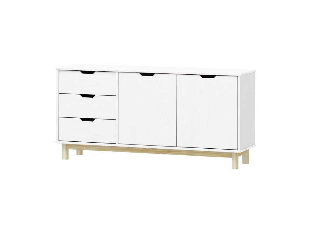 materiál masiv borovice, barevné provedení bílý lak 3 zásuvky s kovovými pojezdy, 2 dvířka, 1 policeDoplňkové parametry