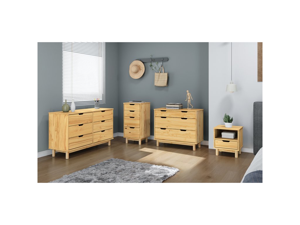 materiál masiv borovice, lakované provedení 2 zásuvky s kovovými pojezdy, 1 dvířka, 1 police otvor na protažení kabelůDoplňkové parametry
