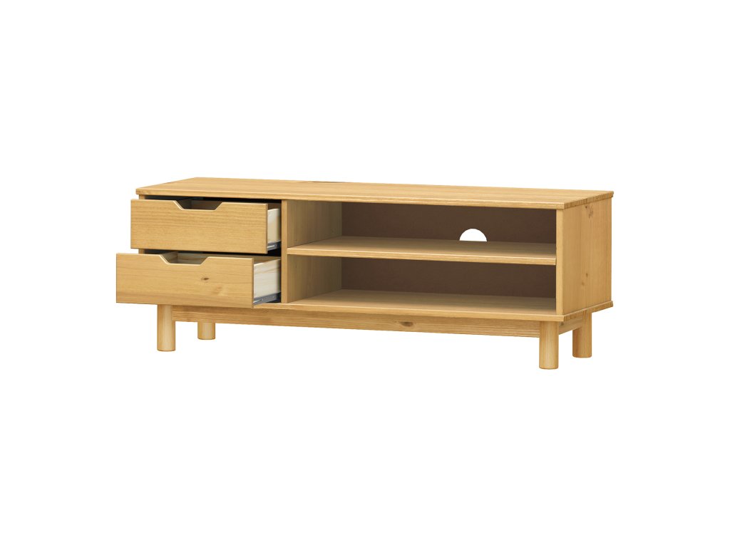 materiál masiv borovice voskovaná v medovém odstínu 2 zásuvky s kovovými pojezdy, 1 police otvor na protažení kabelůDoplňkové parametry