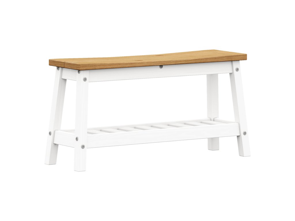 Vyroben z masivní borovice s voskovaným povrchem v bílém odstínu. Sedák je z masivní borovice voskované v medovém odstínu, což zajišťuje odolnost a přírodní vzhled.