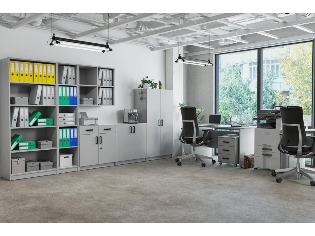 Skříň s policemi Matylda 111 nabízí dostatek prostoru pro uložení dokumentů, kancelářských potřeb i osobních věcí. Díky otevřeným policím máte vše přehledně po ruce.