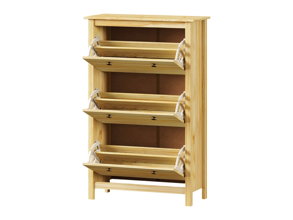Botník TORINO je určený pro organizaci obuvi v předsíni nebo šatně. Díky masivnímu borovicovému materiálu a lakovanému provedení je odolný a snadno udržovatelný. Kovové úchytky usnadňují otevírání a zavírání výklopů.
