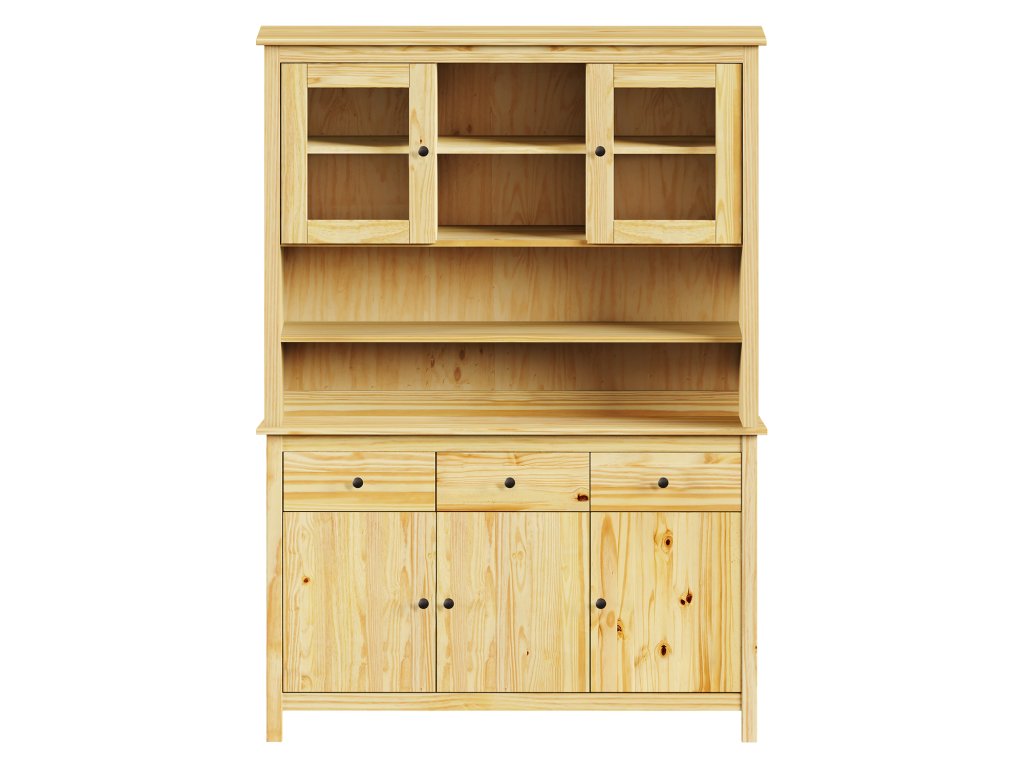 Vyroben z masivní borovice s lakovaným povrchem, odolný a snadno udržovatelný. Kovové úchytky dodávají moderní vzhled.