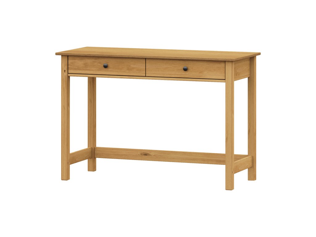 materiál masiv borovice voskovaná v medovém odstínu kovové úchytky v barevném provedení černěná mosaz dvě zásuvky s kovovými pojezdyDoplňkové parametry