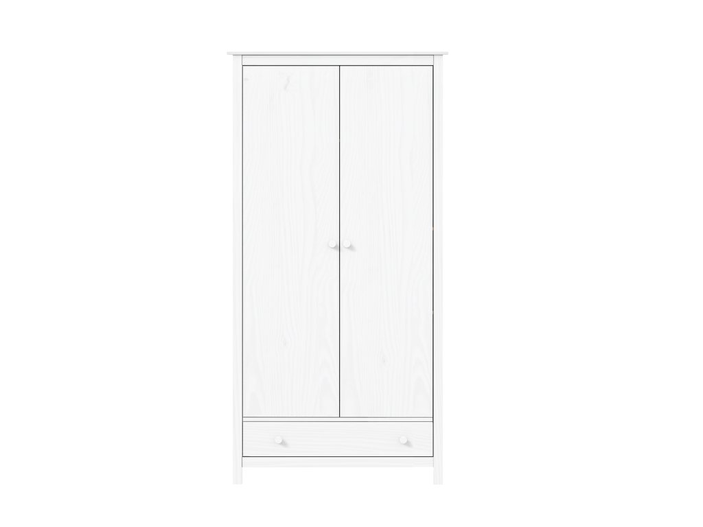 Vyrobena z masivu borovice s bílým lakem, skříň zaručuje dlouhou životnost a snadnou údržbu. Vnitřní povrch je dostupný v čirém nebo bílém laku, což usnadňuje kombinaci s ostatním nábytkem.