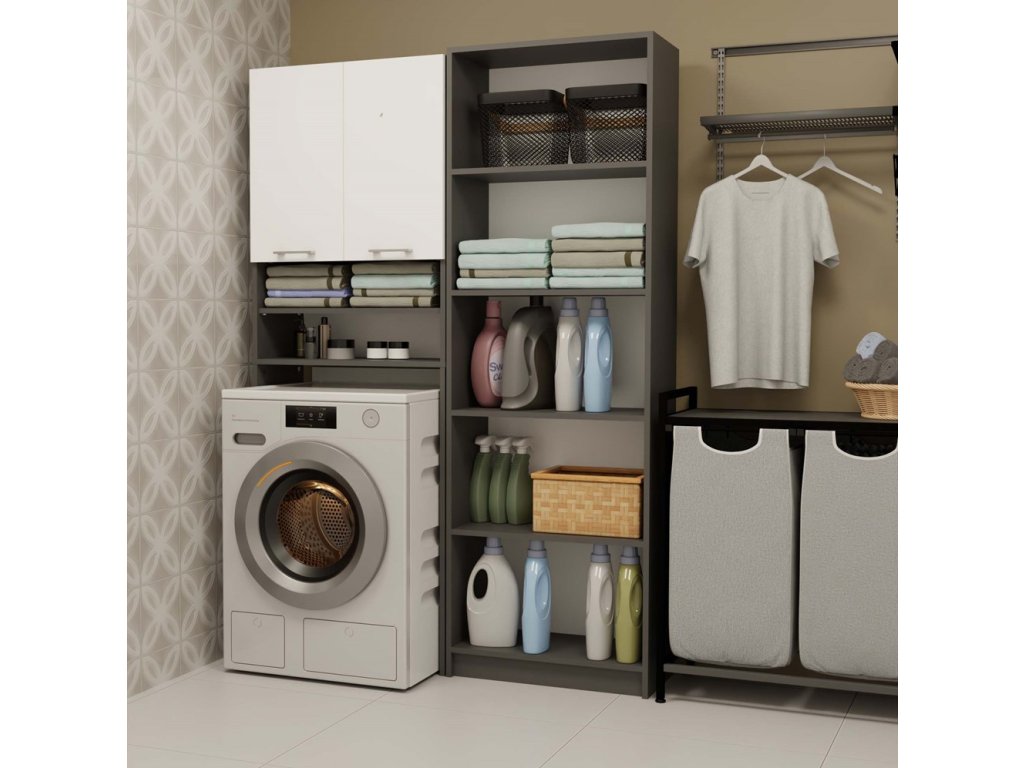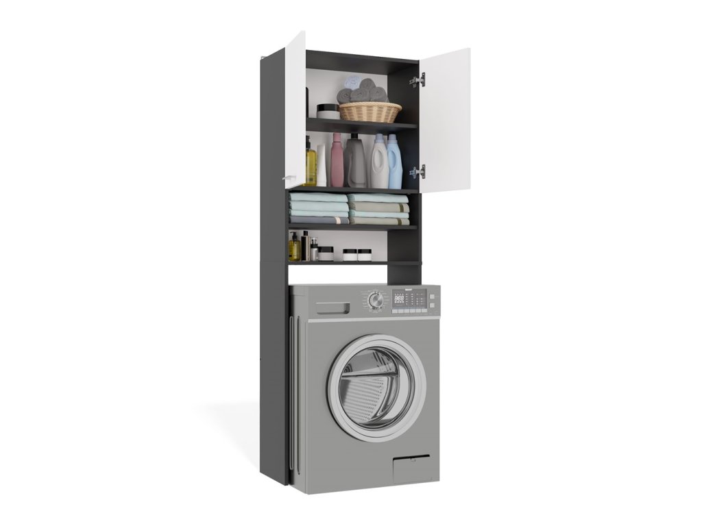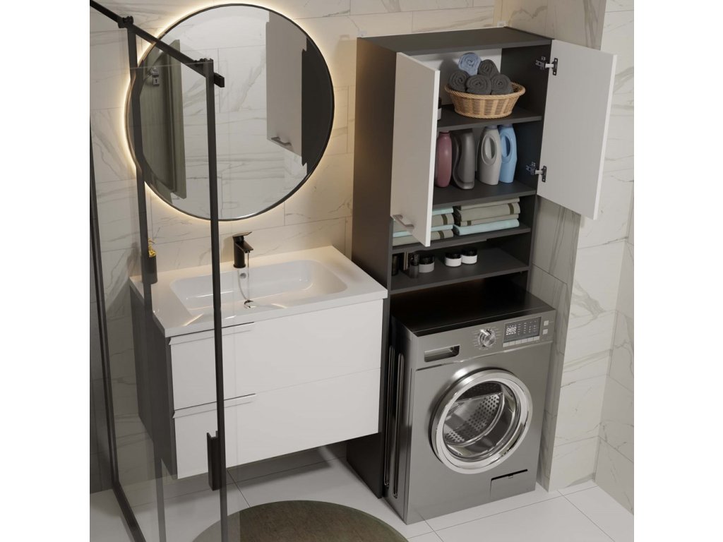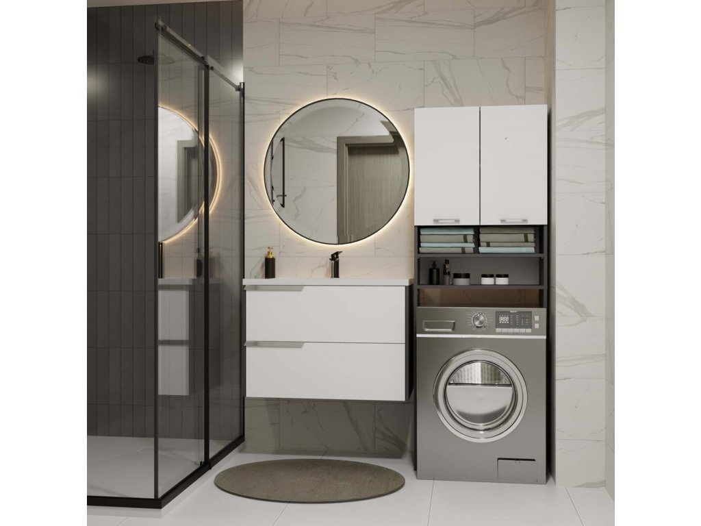Skříňka nad pračku FALCO Pema v minimalistickém designu nabízí úložný prostor s 2 skrytými a 2 otevřenými policemi. Ideální pro uspořádání koupelnových potřeb a drobností.