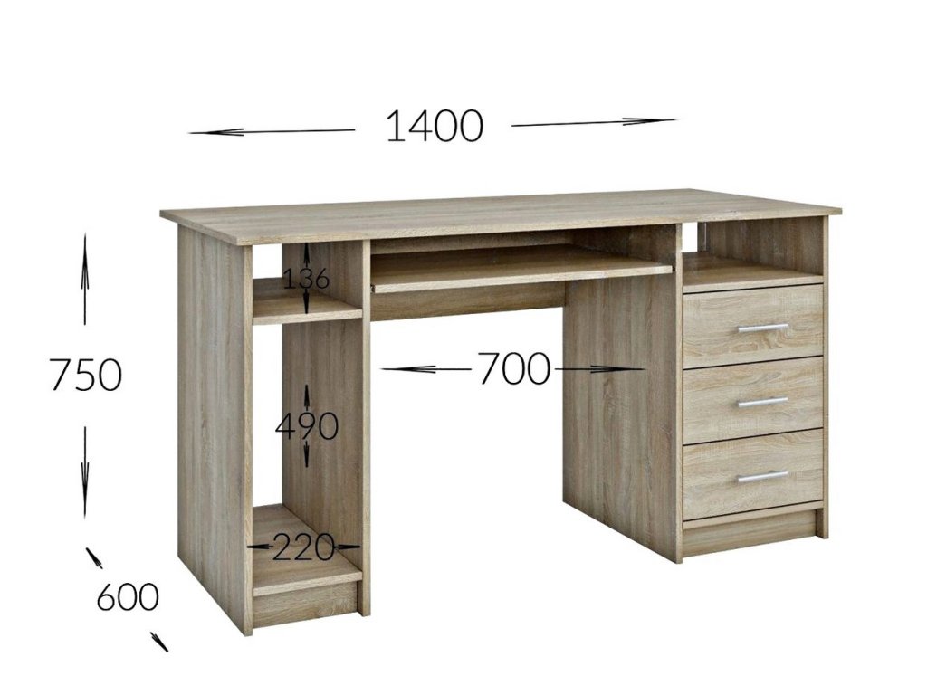 Pracovní sestava OFFICE II v dekoru dub sonoma nabízí psací stůl, regál s dvířky a kontejner se zásuvkami. Vhodná pro kanceláře i dětské pokoje, kde je potřeba praktické a funkční řešení.