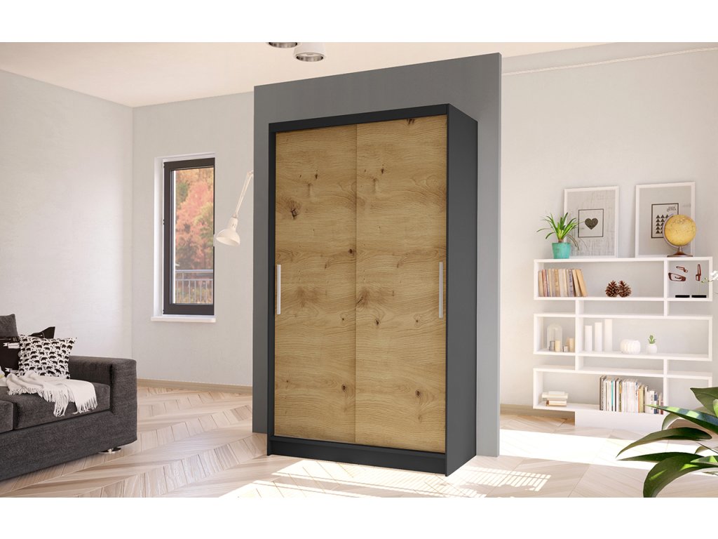 Korpus i dveře jsou vyrobeny z odolné 16 mm laminované desky s ABS hranami, které zajišťují dlouhou životnost. Posuvné dveře se hladce pohybují po hliníkových vodicích lištách. Skříň je dostupná v několika atraktivních barevných provedeních, takže ji snadno sladíte s ostatním nábytkem.