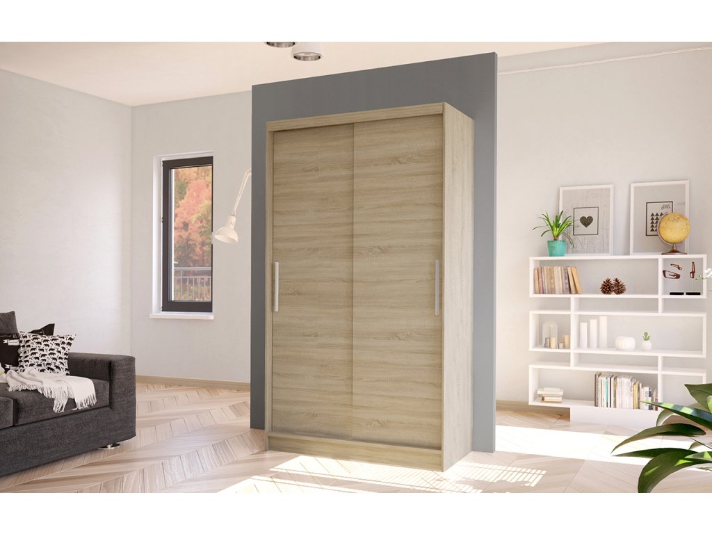 Korpus i dveře jsou vyrobeny z odolné 16 mm laminované desky s ABS hranami, které zajišťují dlouhou životnost. Posuvné dveře se hladce pohybují po hliníkových vodicích lištách. Skříň je dostupná v několika atraktivních barevných provedeních, takže ji snadno sladíte s ostatním nábytkem.