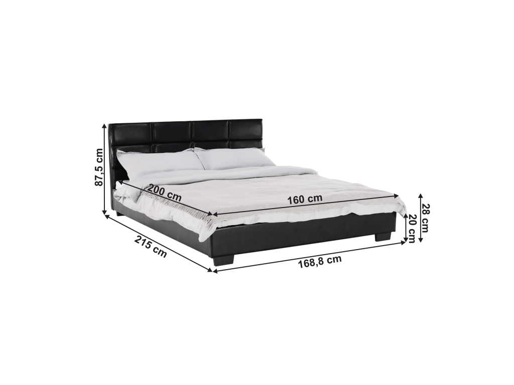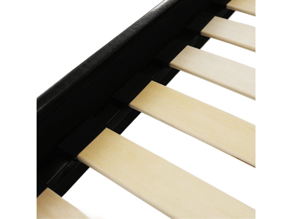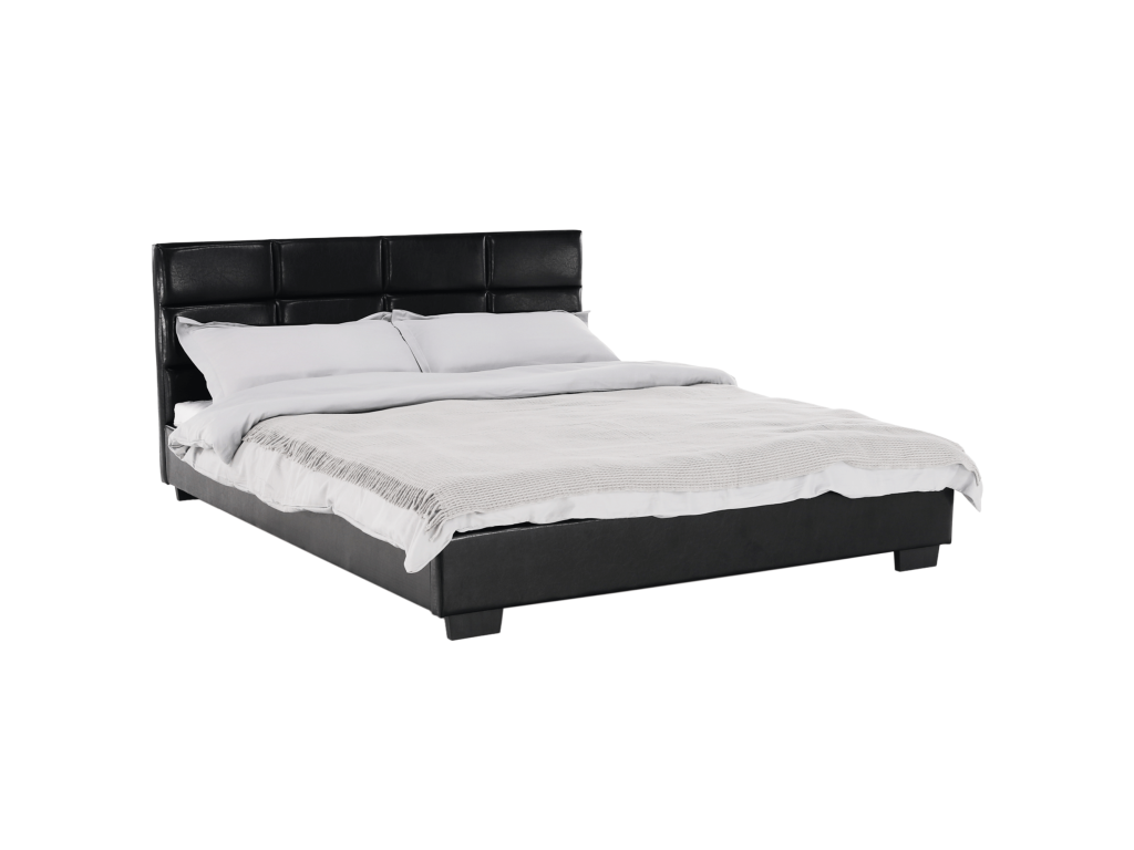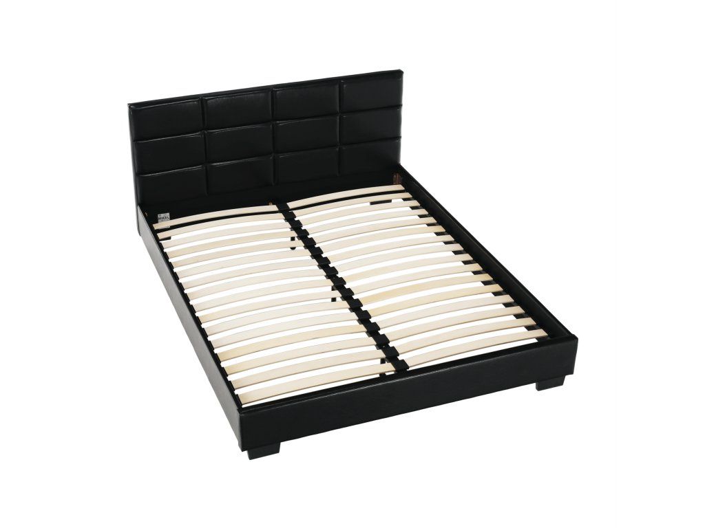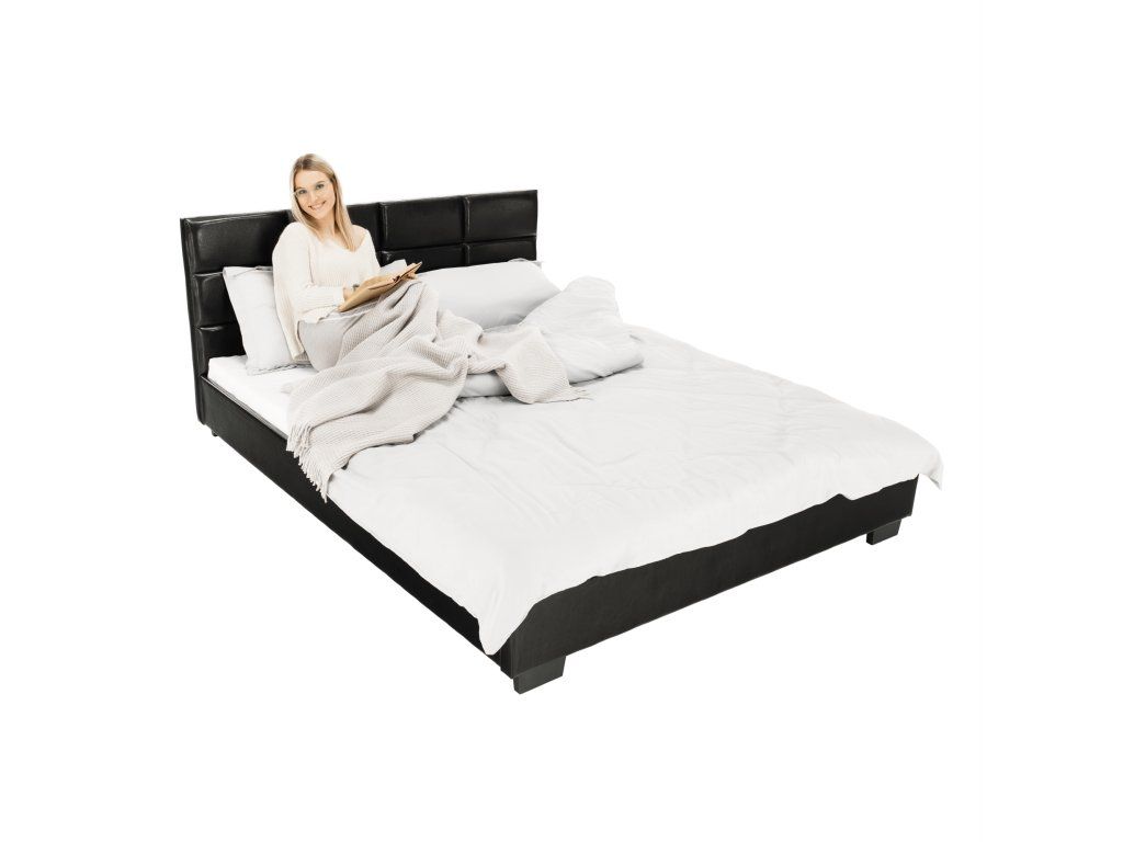 Postel MIKEL s prošívaným čelem, s lamelovým roštem. Barevné provedení černá koženka.Oděruodolnost textilie podle testu Martindale: 100 000 oděrek