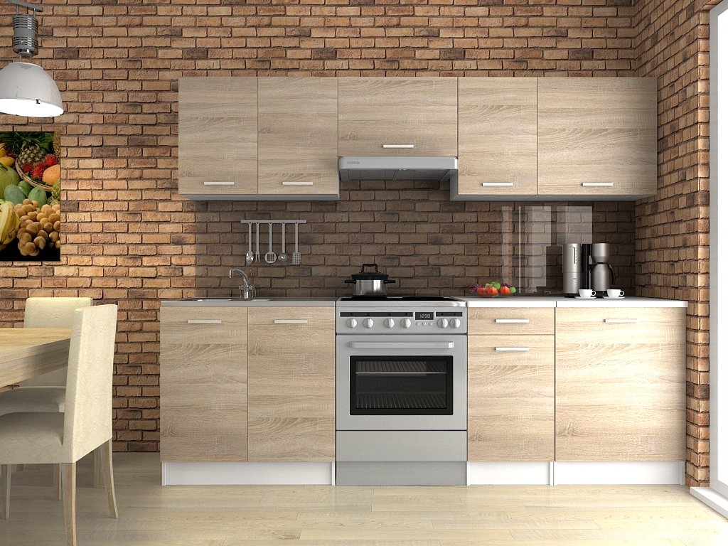 Kuchyňská linka Luigi je ideální volbou pro Vaši kuchyň. Je moderní a zároveň i praktická. Skříňky nabízejí dostatek úložného prostoru. Je vyrobená z lamina, které je odolné a snadné na údržbu. Díky svým rozměrům je vhodná i do malých kuchyní. Skříňky si můžete sestavit libovolně. Kuchyňská linka je dodávaná v demontu. Součástí balení je montážní plánek včetně všech potřebných spojovacích materiálů. Cena je uvedena za sestavu vyobrazenou na úvodní fotografii BEZ PRACOVNÍ DESKY. Kuchyň nabízíme v několika rozměrech i dekorech.Vyobrazené spotřebiče, dřez a dekorace nejsou v ceně.