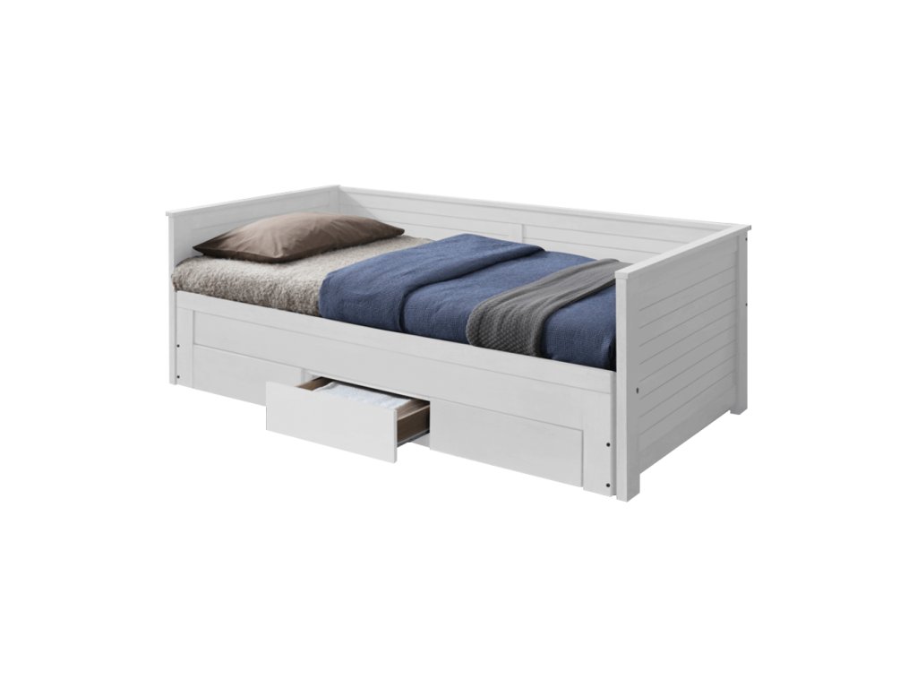 Praktická bílá rozkládací postel GORETA s úložným prostorem a nosností 180 kg