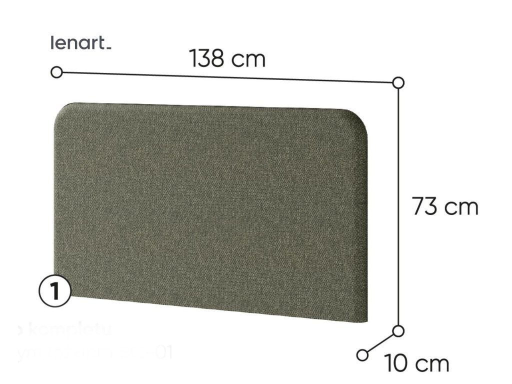 Vyroben z kvalitní látky 100% PES LUKKA 38 a PUR pěny. Rozměry odpovídají šířce 140 cm, hloubce 10 cm a výšce 73 cm, což zajišťuje komfortní oporu.