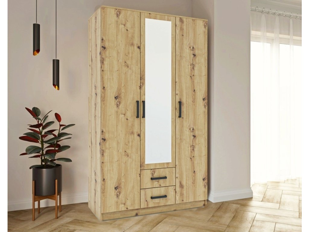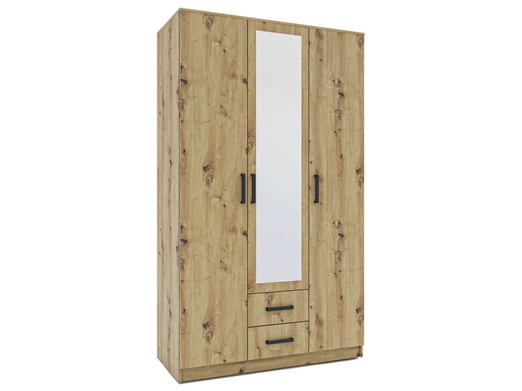 Jednoduchá šatní skříň se zrcadlem, která se díky svým rozměrům vejde i do malých prostorů. Korpus i dveře jsou z kvalitní LTD desky v barvě dub artisan. Nezvyklá výška 205 cm nabídne opravdu dostatek prostoru. Vnitřní rozložení skříně nabízí na jedné straně police, na druhé straně šatní tyč a 2 šuplíky. Dodáváme v demontovaném stavu.Doplňkové parametry