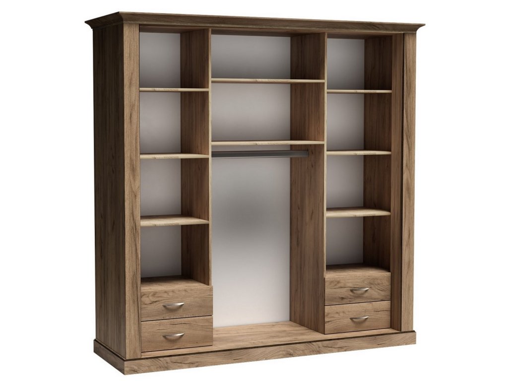 Šatní skříň GOLETA A211 nabízí dostatek místa díky věšákové tyči, policím a zásuvkám. Ideální do ložnice nebo předsíně pro uspořádání oblečení a doplňků.