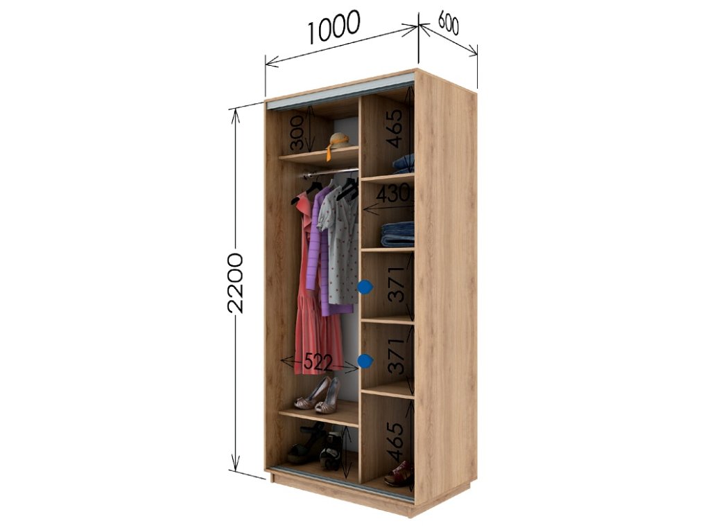 Šatní skříň s posuvnými dveřmi nabízí jednoduché a elegantní provedení. Skříň se díky svým rozměrům vejde i do malých prostorů. Korpus i dveře jsou z kvalitní LTD desky v barvě bílá diamant, přední dveře jsou posuvné s vloženými skleněnými pásy. Nezvyklá výška 220 cm nabídne opravdu dostatek prostoru. Vnitřní rozložení nabízí police a šatní tyč viz. obrázek. Skříň má aluminiové kování a lišty. Boční regál není v ceně, možnost dokoupení jako i praktické zásuvky do vnitřního prostoru skříně (modrá barva na perokresbě naznačuje, kam lze zásuvky umístit), obojí naleznete v naší nabídce. Dodáváme v demontovaném stavu.Doplňkové parametry