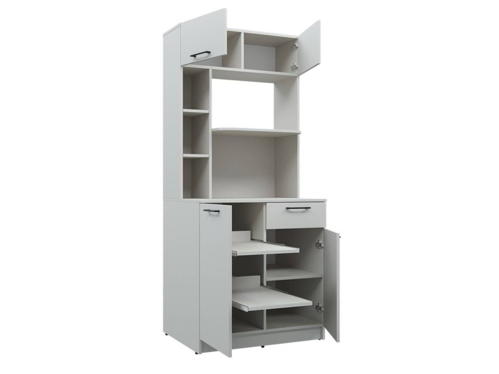 samostatná kuchyňská skříňka je ideálním kouskem do vaší kuchyně, která poslouží pro zvětšení úložného prostoru a v kuchyni působí stylově a nadčasově. Skříňka je kompaktním řešením i pro malé byty, studia, kanceláře nebo hotelové pokoje. Díky promyšlené organizaci prostoru je kuchyně vybavena pěti uzavřenými a pěti otevřenými policemi, praktickým prostorem pro mikrovlnnou troubu a výsuvnými policemi na odkládání věcí. kombinuje funkčnost a moderní design a harmonicky doplňuje jakýkoli interiér.