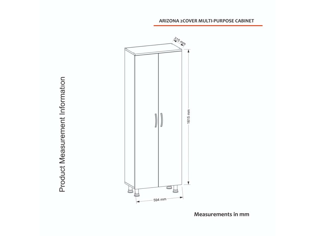 Rozměry jsou 59,4 cm na šířku, 161,5 cm na výšku a 31,5 cm do hloubky, což poskytuje dostatek úložného prostoru.