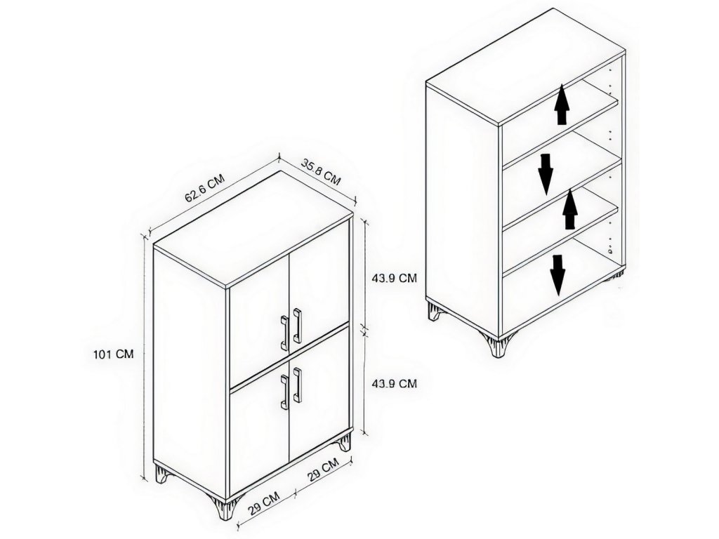 Čtyřdveřová nízká komoda je vyrobena z kvalitní desky LTD nenáročné na údržbu, v barevném provedení bílá. Tloušťka materiálu - 18 mm. Dodáváme v demontovaném stavu.Buďte první, kdo napíše příspěvek k této položce.