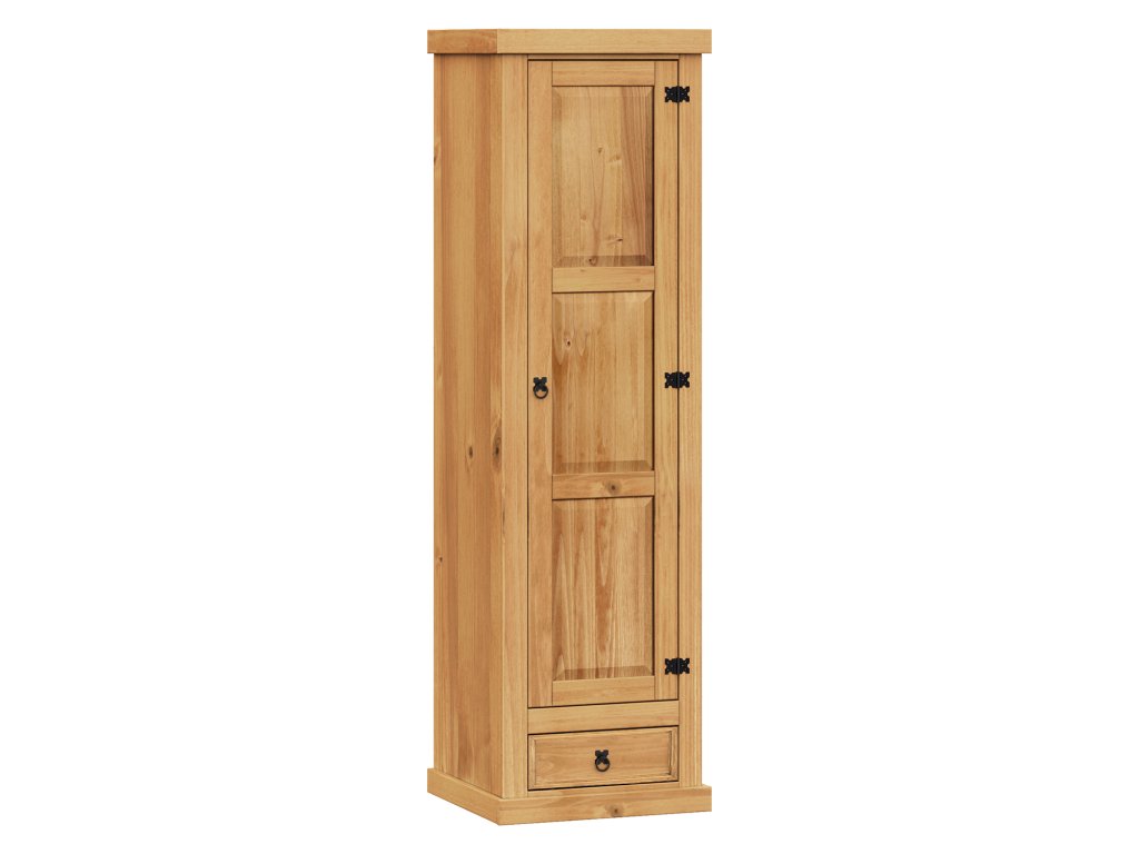 materiál masiv borovice voskovaná v medovém odstínu 1 zásuvka, 1 dveře, kovové ozdobné úchytky 3 police z toho 2 variabilní součást sestavy CoronaDoplňkové parametry