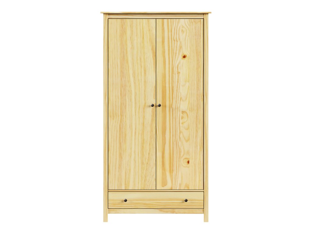 Skříň je vyrobena z masivu borovice s lakovaným povrchem, což zajišťuje odolnost a snadnou údržbu.