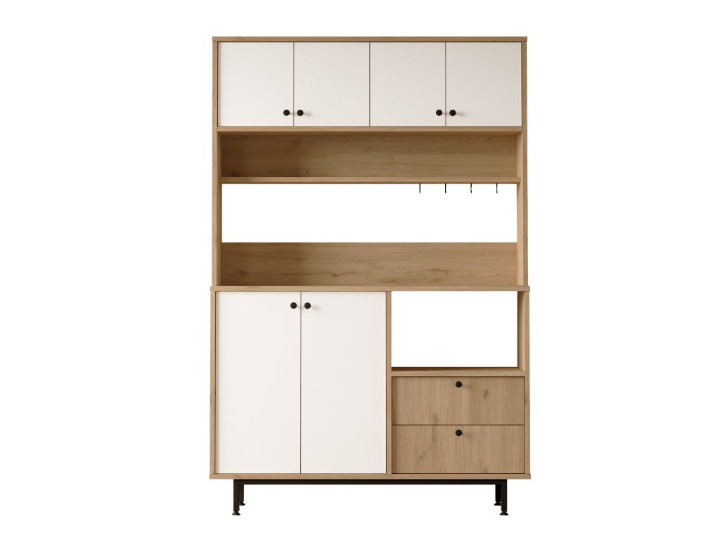 Policová skříň ZAVALETA je ideální pro kuchyně, nabízí místo pro mikrovlnku a další kuchyňské potřeby. Moderní design a praktické uspořádání usnadní organizaci.