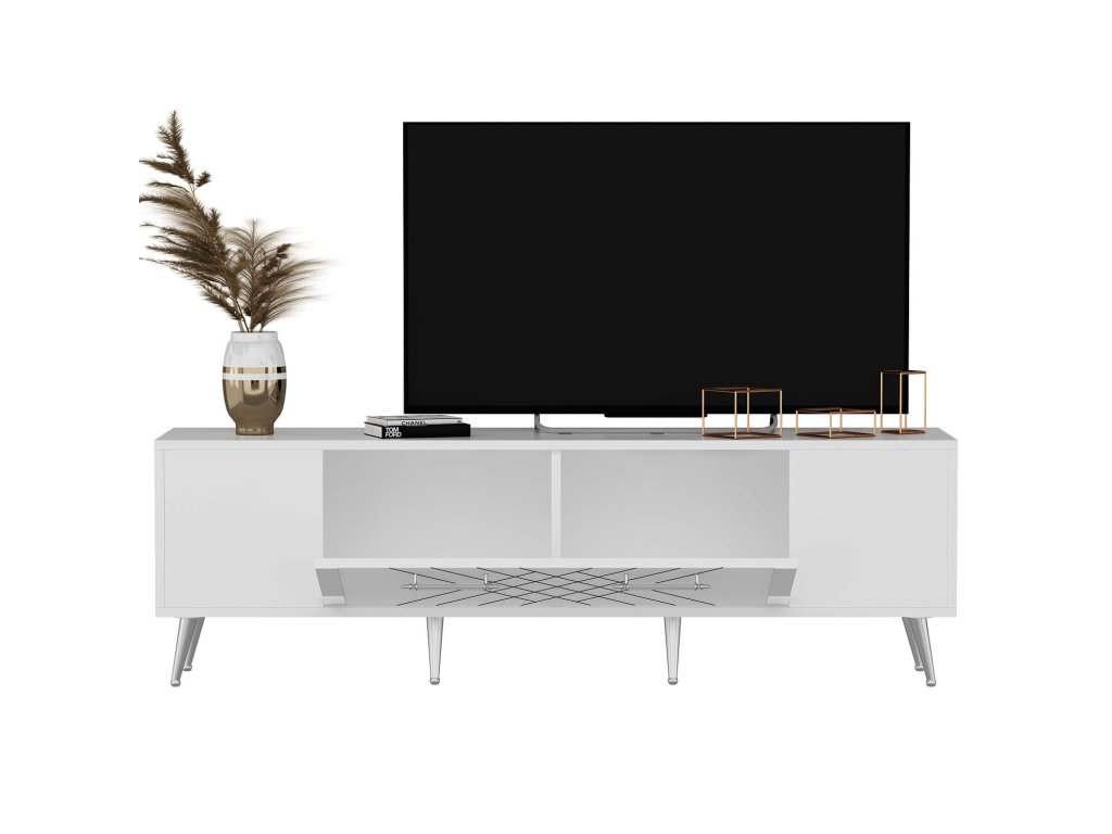 HUSLIA TV stolek na nožičkách, bílá / stříbrná