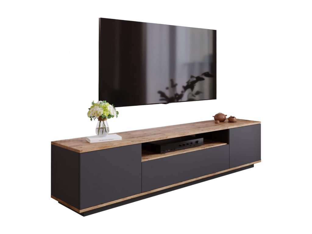Televizní skříňka NARVA je ideální pro uspořádání vašeho obývacího pokoje. Poskytuje dostatek úložného prostoru na elektroniku, dekorace i drobnosti.