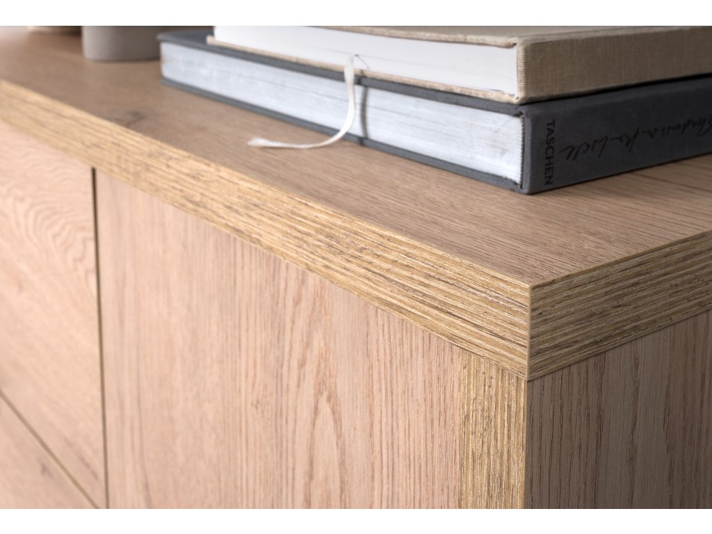 Televizní stolek JORDAN dub krémový je ideální do obývacího pokoje nebo ložnice. Poskytuje dostatek úložného prostoru pro elektroniku, knihy či dekorace.