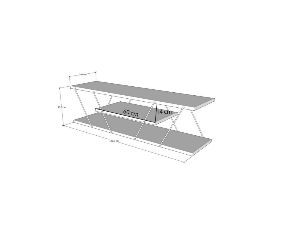 Stolek má šířku 120 cm, hloubku 30 cm a výšku 33 cm, což je ideální do větších obývacích pokojů.