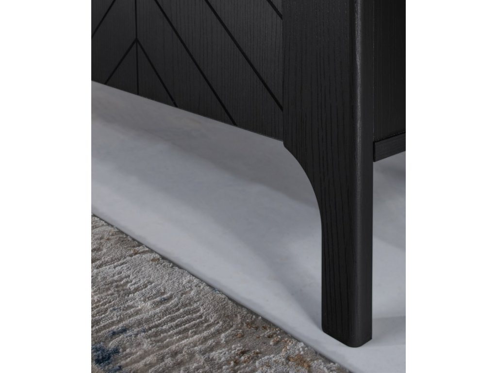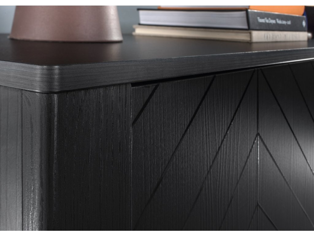 Zaujme výrazným vzorem rybí kosti na čelních plochách, vytvořeným pomocí UV technologie. Ten dodává celému kusu charakter a styl, aniž by rušil celkovou čistotu tvaru. Kovové minimalistické úchyty podtrhují její moderní vzhled.