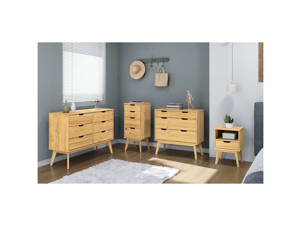 Vyroben z masivní borovice s lakovaným povrchem, který je snadno udržovatelný a odolný vůči poškození.