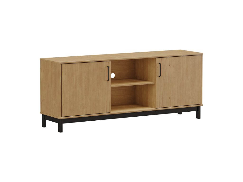 Stolek MADRID z masivní borovice v provedení buk s černými nohami nabízí dvě police a dvě dvířka, ideální pro uložení elektroniky a příslušenství. Vhodný do obývacích pokojů či kanceláří.