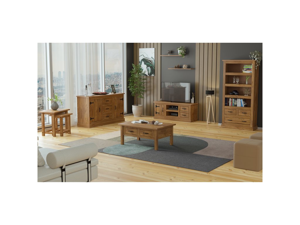 Materiál masiv borovice v provedení dub antik s lakovaným povrchem dodává nábytku rustikální vzhled a dlouhou životnost. Vhodný k různým stylům interiéru.