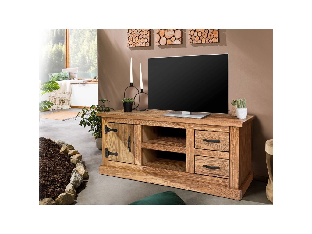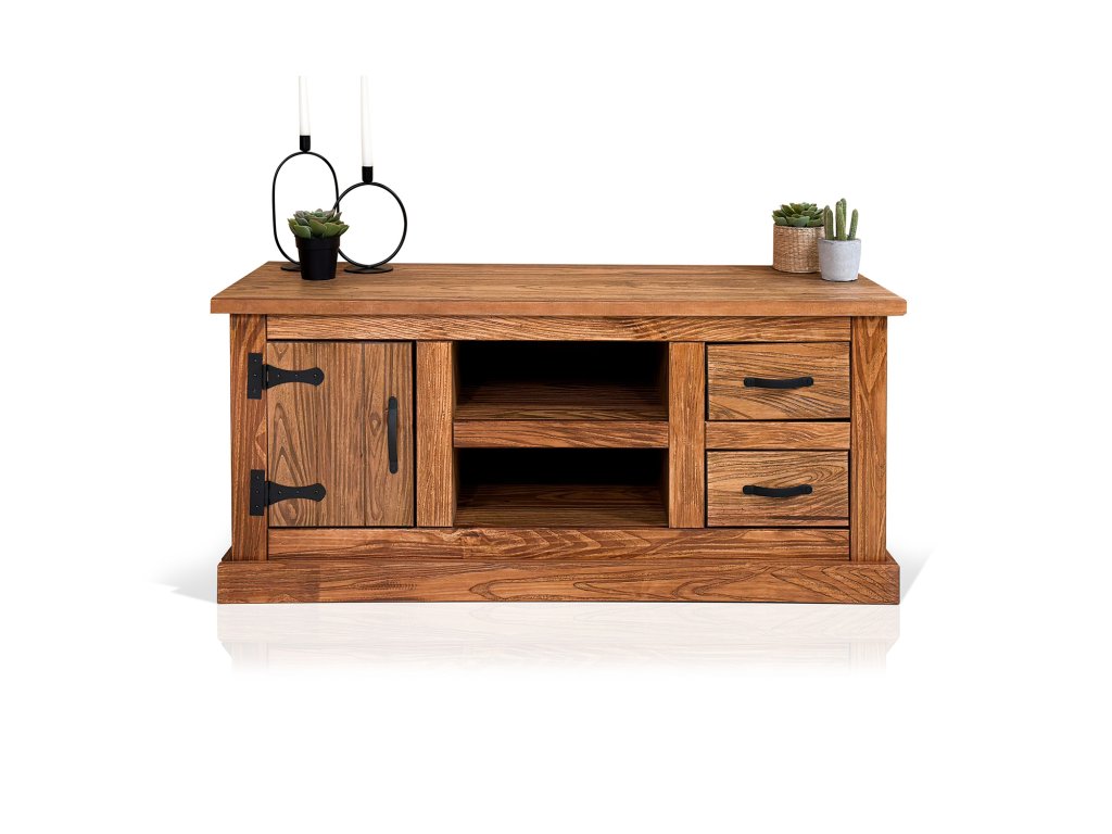 TV stolek EL DORADO s dvěma zásuvkami, dvířky a otevřenými policemi nabízí dostatek úložného prostoru pro elektroniku a příslušenství. Ideální do obývacích pokojů či kanceláří.