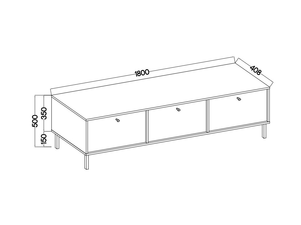 Stolek má šířku 180 cm, výšku 50 cm a hloubku 40,8 cm, což je ideální pro většinu televizorů a doplňků.