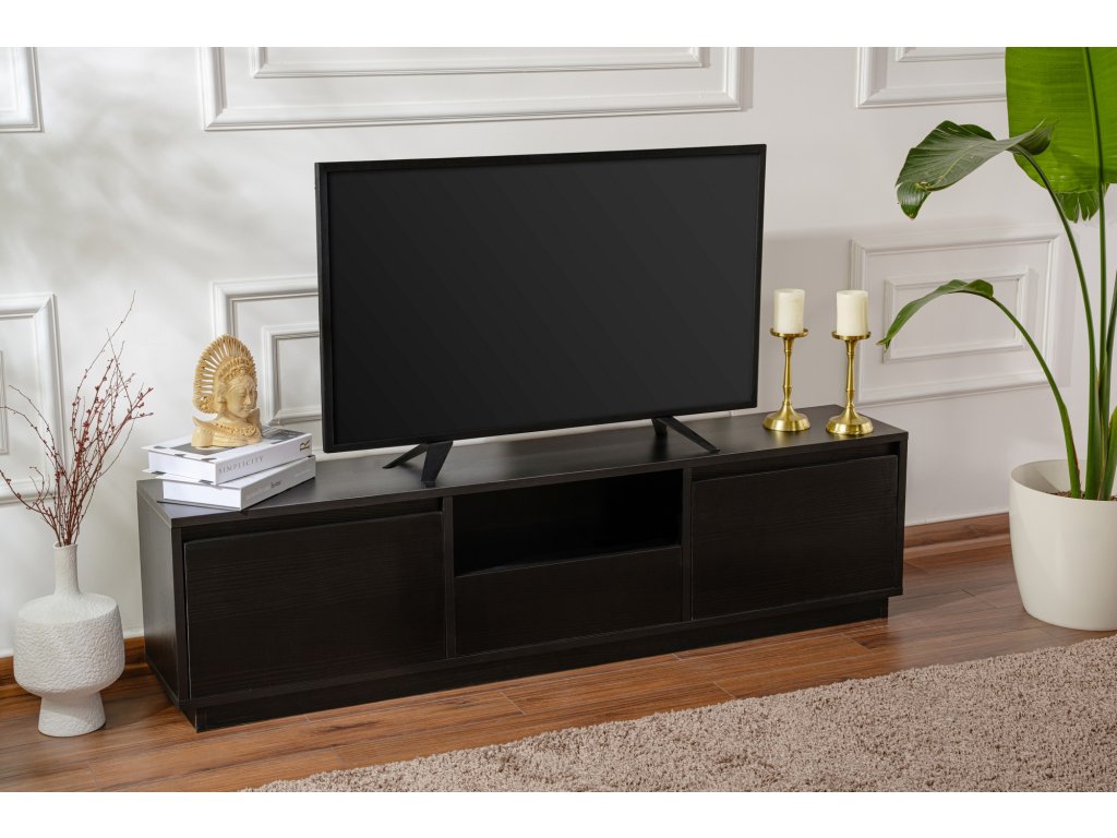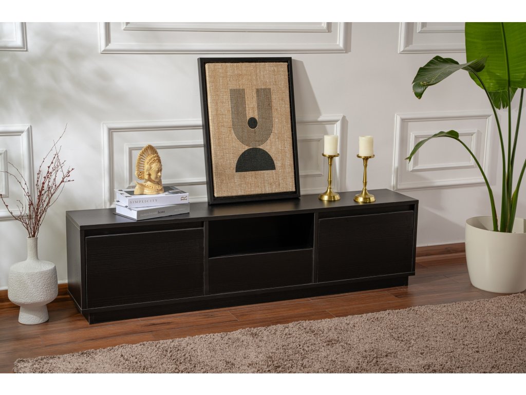 Tento televizní stolek je vyroben ze 100% dřevotřísky s melaminovým povlakem a je nejen stylový, ale také odolný a má dlouhou životnost. Tloušťka 18 mm zajišťuje stabilitu a robustnost, zatímco dřevěně černá barva dodá každé místnosti nádech sofistikovanosti.