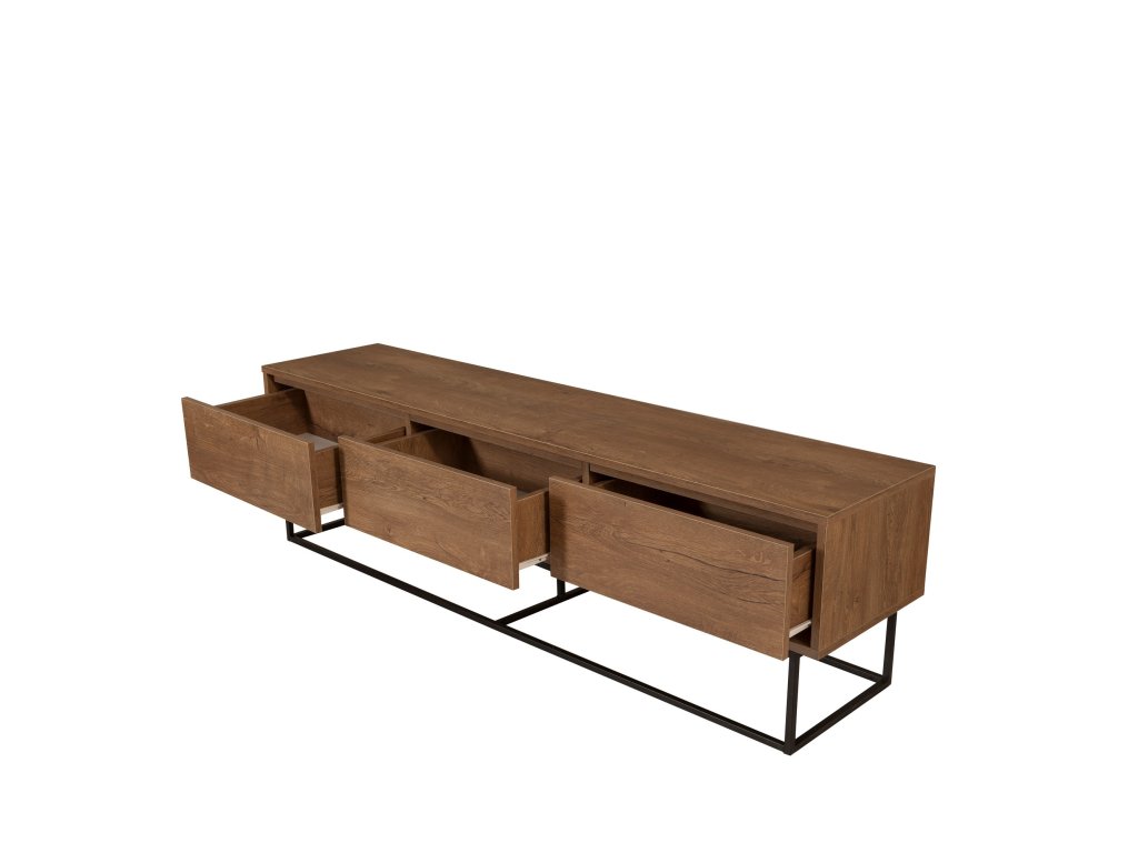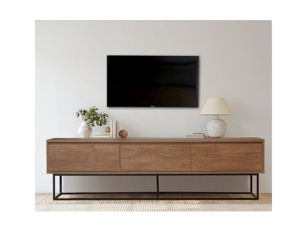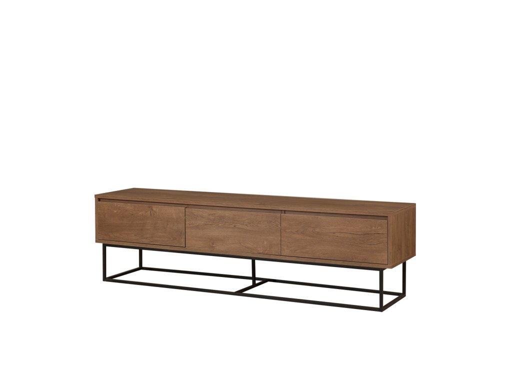 Industriální TV stolek Viano kombinuje moderní design s funkčností. Ideální pro obývací pokoj, nabízí dostatek úložného prostoru a pevnou konstrukci.