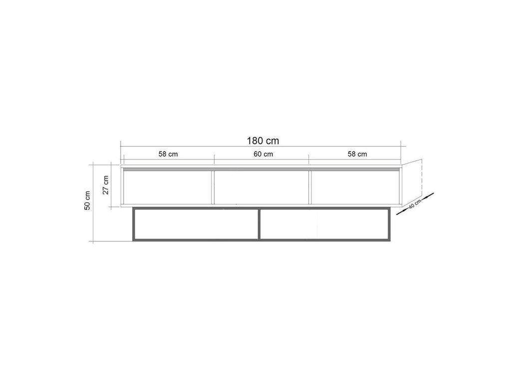 Stolek má šířku 180 cm, hloubku 40 cm a výšku 50 cm, což poskytuje dostatek prostoru pro větší televizory a doplňky.
