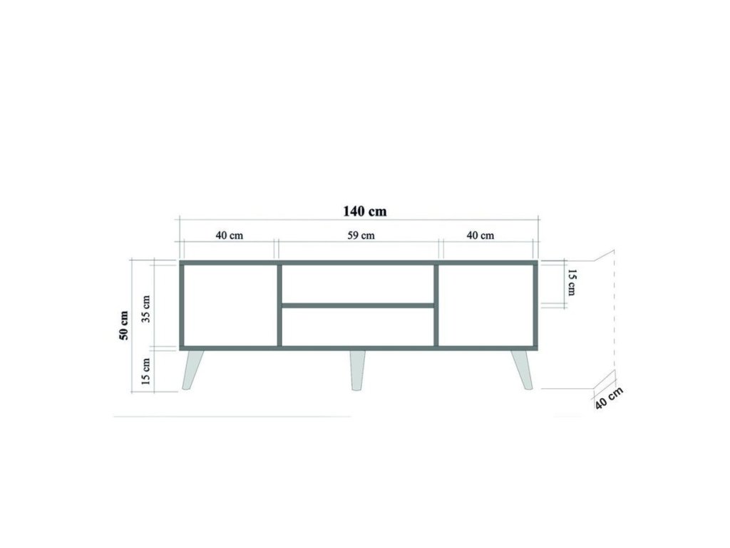 Stolek má rozměry 50 x 140 x 40 cm, což je ideální velikost pro většinu obývacích pokojů a televizorů.