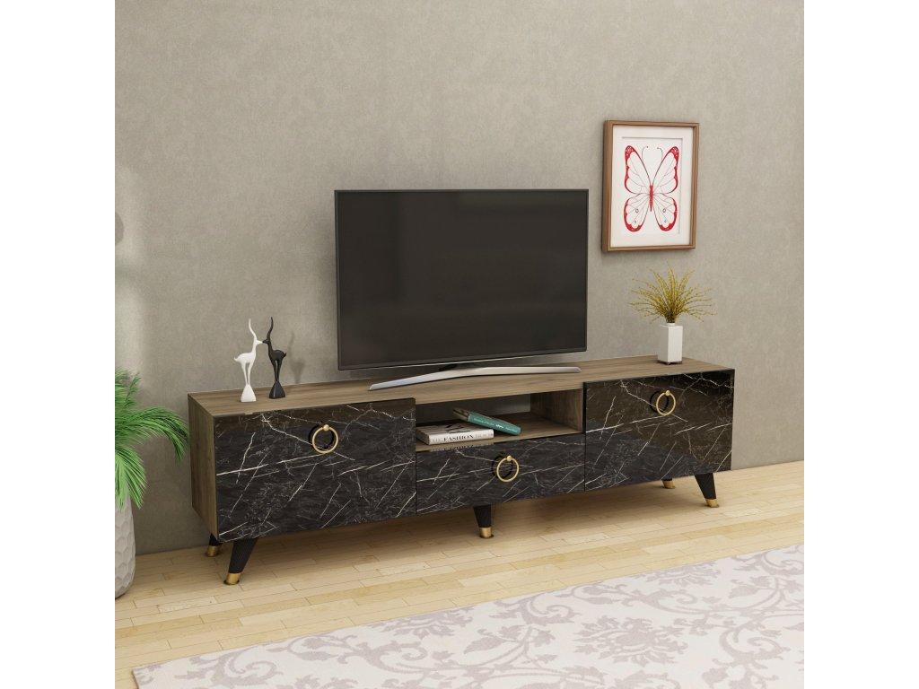 Stolek spojuje elegantní design s praktickým uspořádáním. Jeho robustní konstrukce a kvalitní materiály zajišťují dlouhou životnost, zatímco luxusní provedení dodá vašemu interiéru sofistikovaný vzhled. Pořiďte si TV stolek a dodejte svému obývacímu pokoji styl a praktičnost!