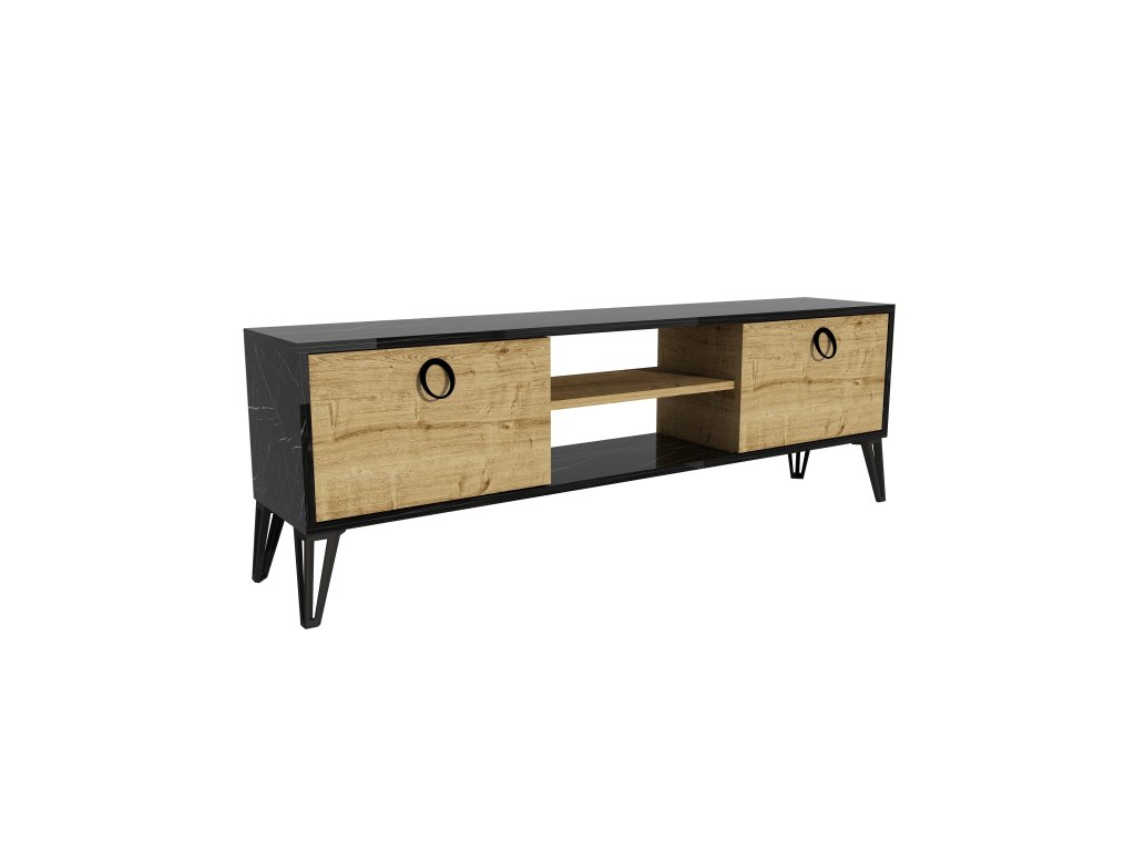 TV stolek je dokonalou kombinací elegance a funkčnosti, která promění váš obývací pokoj ve stylový prostor. Díky regálku a dvěma plným dvířkám nabízí dostatek úložného prostoru pro vaše elektronické zařízení, kabely, knihy či dekorace. Jeho luxusní design a kvalitní zpracování zaručují dlouhou životnost a moderní vzhled.