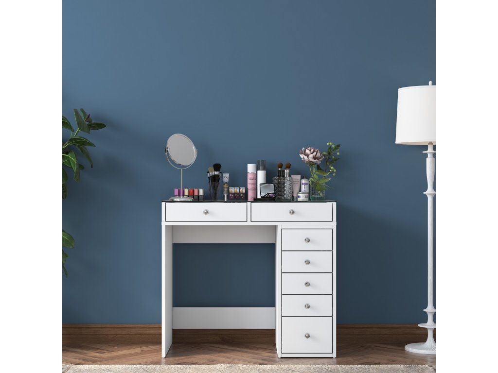 Toaletní stolek je navržen tak, aby kombinoval estetiku a praktičnost. Díky sedmi prostorným zásuvkám budete mít vše potřebné vždy po ruce a zároveň vytvoříte organizovaný a elegantní koutek ve vaší ložnici.