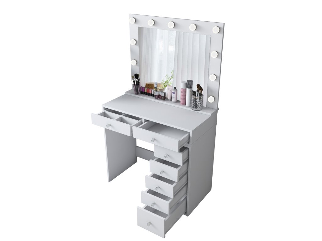 Toaletní stolek se zrcadlem nabízí 6 zásuvek pro uskladnění kosmetiky, šperků a dalších drobností. Velké zrcadlo usnadňuje každodenní úpravu vzhledu.