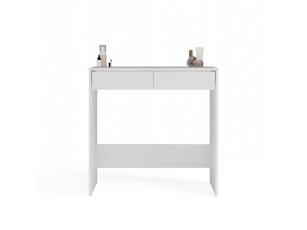 Nadčasový toaletní stolek Marissa je jedinečný kousek - dokonalé řešení pro ty, kteří hledají spojení funkčnosti a estetiky v každém detailu. Díky svým kompaktním rozměrům je ideální volbou i pro menší místnosti, skvěle se hodí do ložnice, pracovny nebo studentského pokoje. Elegantní bezúchytková čela zásuvek zajistí pohodlné používání a dodají moderní vzhled. Nábytek je vyroben z kvalitního lamina, které je snadno udržovatelné a odolné proti oděru.